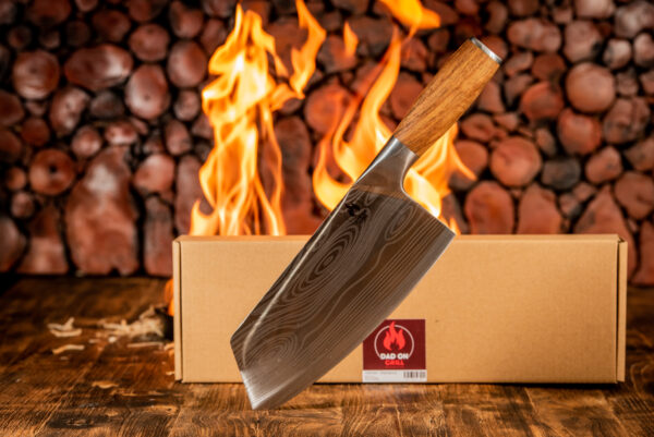 Ontdek onze koksmes met een prachtig gelaserd Damascus patroon, speciaal ontworpen voor vaders die van barbecueƫn houden. Met een elegant walnoten handvat en perfecte balans, biedt dit mes ultiem comfort en controle. Compleet met het iconische Dad on Grill logo, is dit mes een essentiƫle toevoeging aan jouw barbecue-arsenaal.